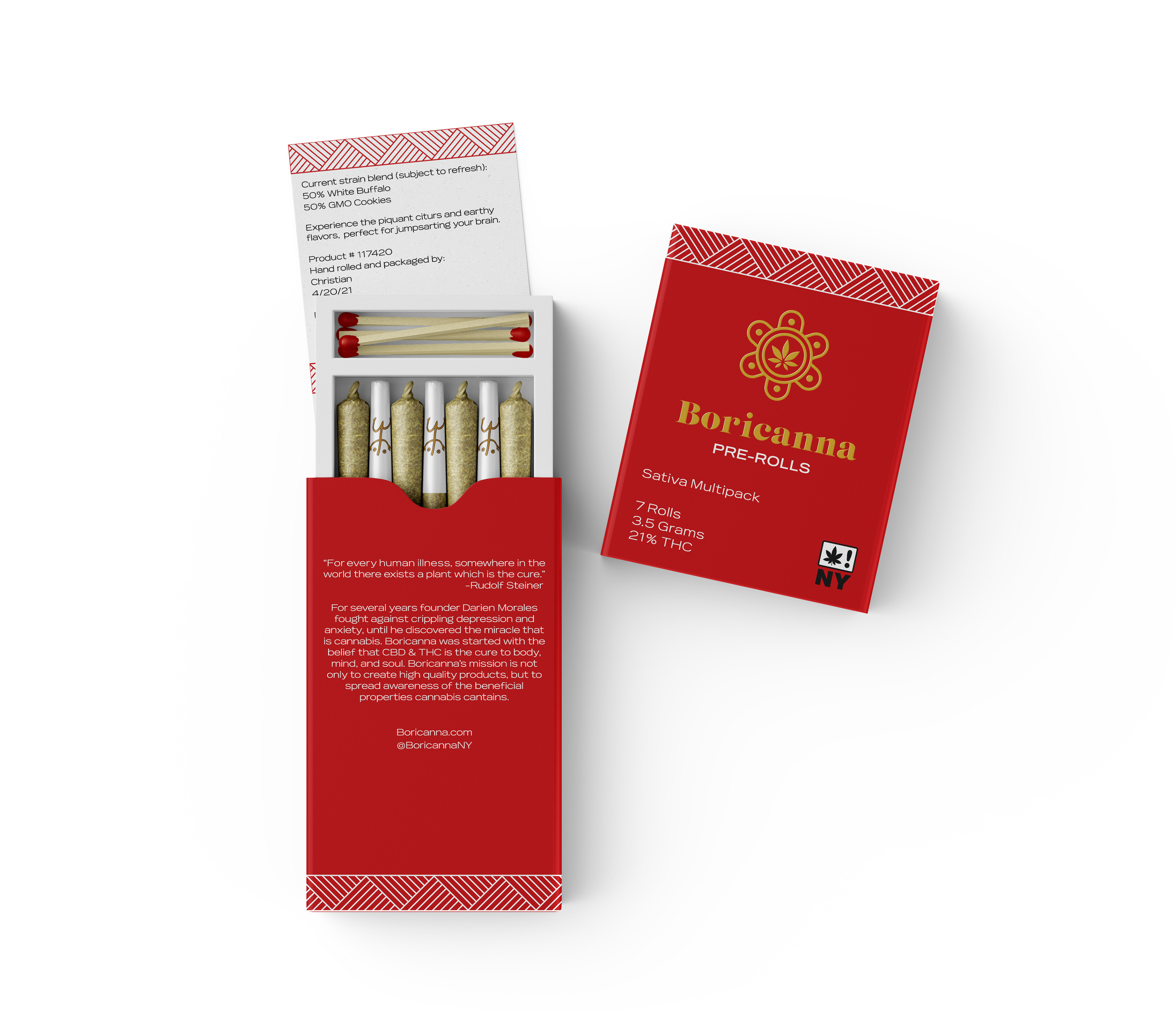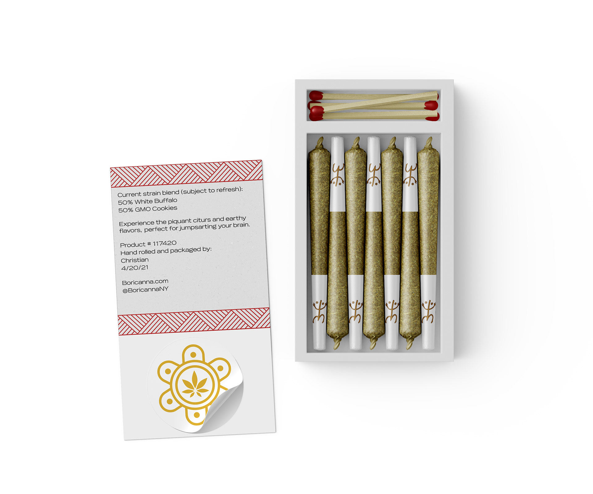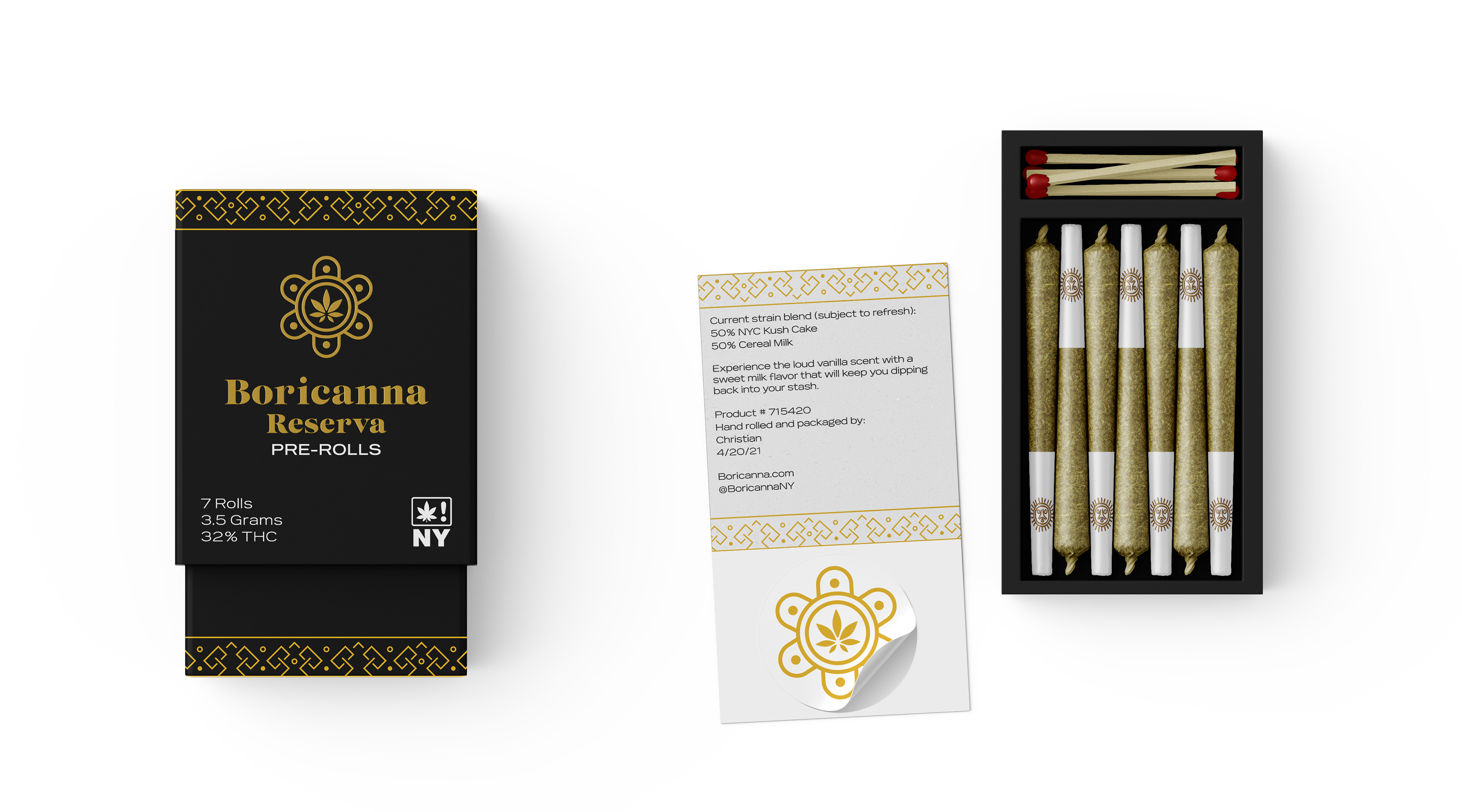 Boricanna produces responsibly farmed, organic, high-quality cannabis products. Boricanna uses traditional designs inspired by the history and rich agriculture of Puerto Rico to give a rustic yet elegant look to the package designs.